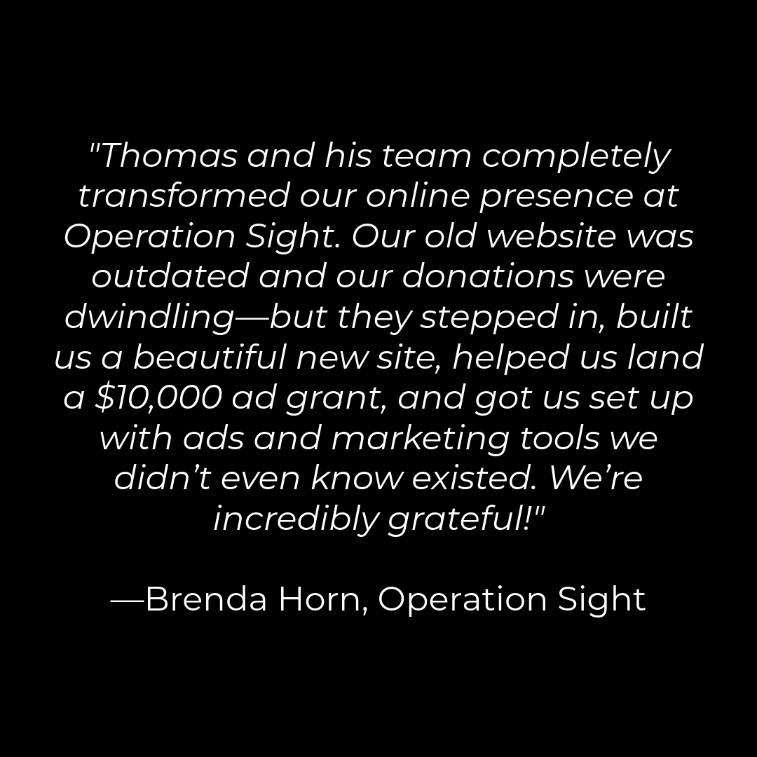 This grant covers the strategy, design, setup, and coaching—including websites, website revisions, donor funnels, branding, outreach campaigns, fundraiser event planning.